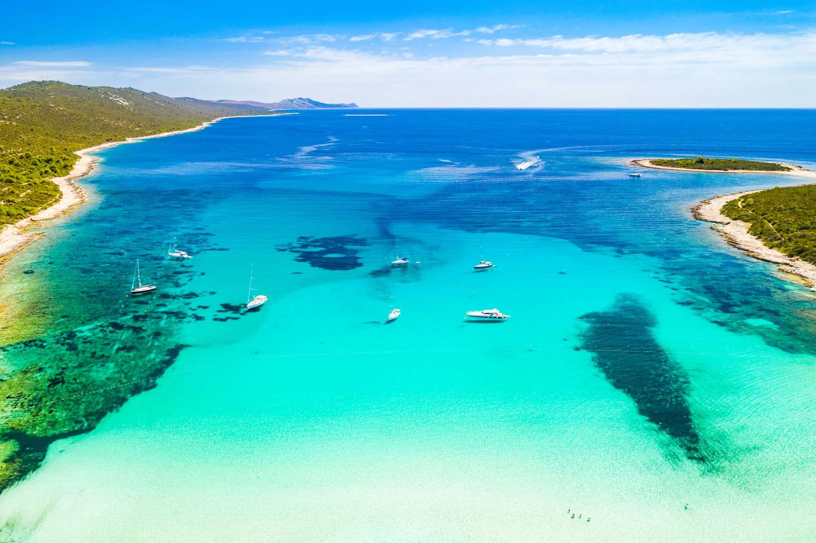 We begin our journey with a scenic cruise toward Čiovo, where panoramic views of crystal-clear waters and lush coastal landscapes await. From there, we make our way to the iconic Duga Bay, better known as the Blue Lagoon. Dive into the shimmering turquoise sea for swimming, snorkeling, or simply relaxing in this natural paradise.